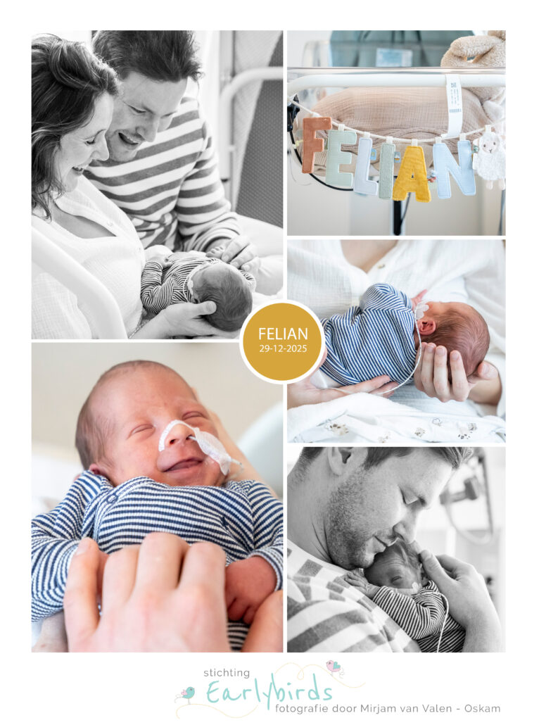Lieve Felian, wat was het bijzonder om foto’s van jou te mogen maken. Jouw ouders genoten zichtbaar van jou, en ik vond het een eer om dat vast te mogen leggen. Ik hoop dat je later, wanneer je deze foto’s terugkijkt, kunt voelen hoeveel liefde er toen al voor je was. Ik wens jou, samen met papa en mama, alle geluk voor de toekomst. Hopelijk mag je snel mee naar huis om kennis te maken met jullie viervoeter.