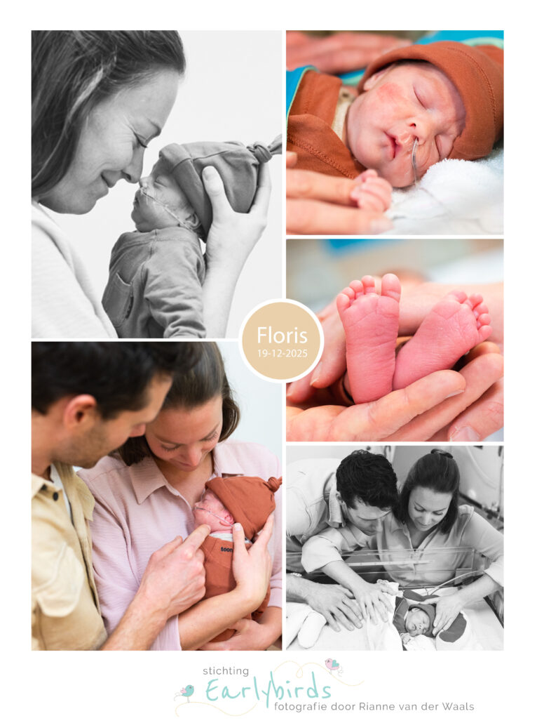 Niet veel later, op 19 december, werd met 29+4 onze zoon Floris geboren: met 1380 gram, nog heel klein, maar een echt strijdertje. Hij deed het meteen zo goed dat hij zelfs even bij mij mocht liggen. Hij kreeg ondersteuning bij de ademhaling, een sonde en werd met allerlei kabeltjes gemonitord. Hij maakte snel stappen: de beademingsondersteuning kon worden gestopt en na twee weken mocht hij al over naar het CWZ.